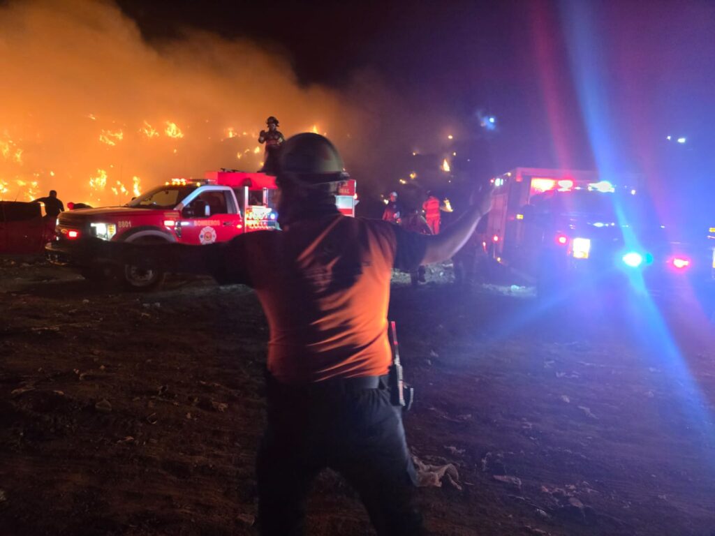 Guanajuato, Gto., 23 de septiembre de 2025 .– La noche de este lunes se registró un incendio superficial presuntamente provocado en el talud poniente del sitio de disposición final, que alcanzó una extensión aproximada de 50 metros lineales por 8 metros de altura.