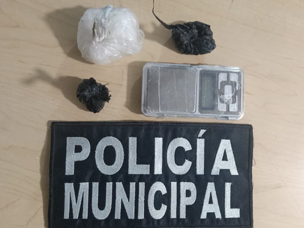 Al notar la presencia policial, uno de los sujetos ingresó a un inmueble, mientras que el otro permaneció en el lugar. Al ser informado de la falta administrativa, el hombre comenzó a comportarse de manera agresiva, por lo que se realizó una inspección preventiva, encontrándole entre sus pertenencias tres envoltorios con presunta droga cristal y una báscula gramera, por lo que fue asegurado y puesto a disposición del Ministerio Público.