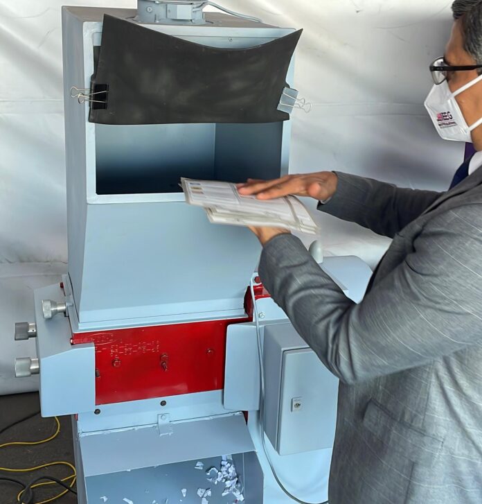 El evento de destrucción de llevó a cabo este mediodía en las instalaciones del instituto, los restos de papel serán donados para el reciclaje y la elaboración de textos gratuitos para estudiantes de la entidad.