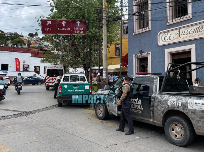 Guanajuato.- Elementos de la Policía Municipal detuvieron a un presunto asaltante que lesionó con arma blanca a dos afectados.