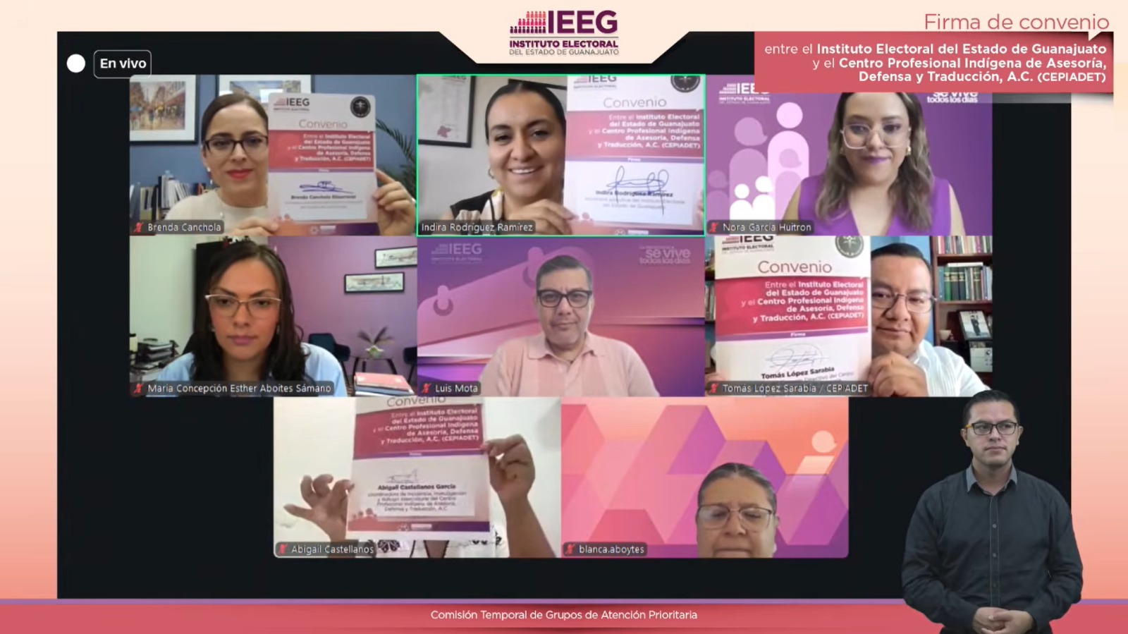El Instituto Electoral del Estado de Guanajuato (IEEG) firmó un convenio de colaboración con el Centro Profesional Indígena de Asesoría, Defensa y Traducción, Asociación Civil (CEPIADET A.C.).