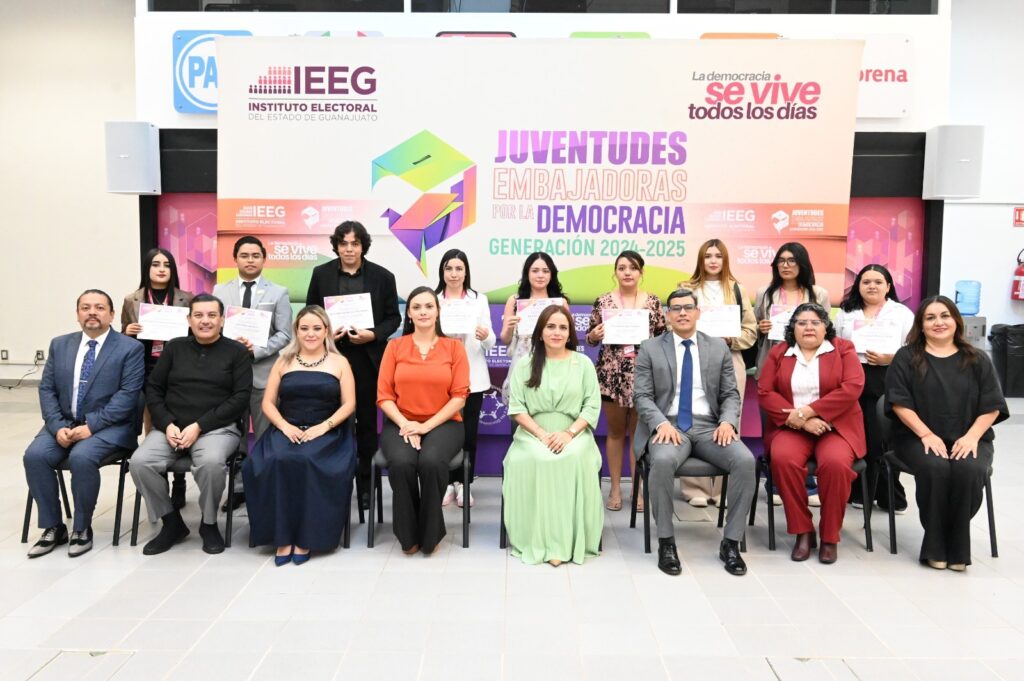 El Instituto Electoral del Estado de Guanajuato (IEEG) a través de la Comisión de Cultura Política Electoral (CCPE) premió a las personas ganadoras del programa Juventudes Embajadoras por la Democracia Generación 2024-2025.